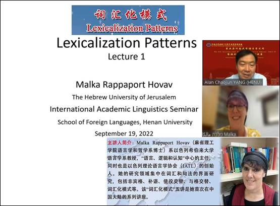 环球手机在线登陆入口第五届语言学术周暨“海外高端专家系列讲座”(100~109)在众多师生的期待下于9月19日成功拉开序幕,本活动将持续5天时间,每天两场高端讲座。为拓展广大师生的国际视野,营造良好的学术氛围,外语学院特邀请以色列希伯来大学语言学系教授Malka Rappaport Hovav和英国剑桥大学理论级应用语言学系教授Ian Roberts做系列讲座,他们的主题分别为“词汇化模式(Lexicalization Patterns)”和“普通语言学理论(General Linguistic Theories)”。此次系列讲座分别在Zoom平台和腾讯会议平台进行,有来自国内外知名高校480多位师生广泛关注并热情参与。讲座伊始,外语学院院长杨朝军教授致欢迎辞,并简要介绍了两位教授的教育经历、研究领域及学术成就,同时对他能在百忙之中抽时间为学院师生作线上报告表达了诚挚的感谢。